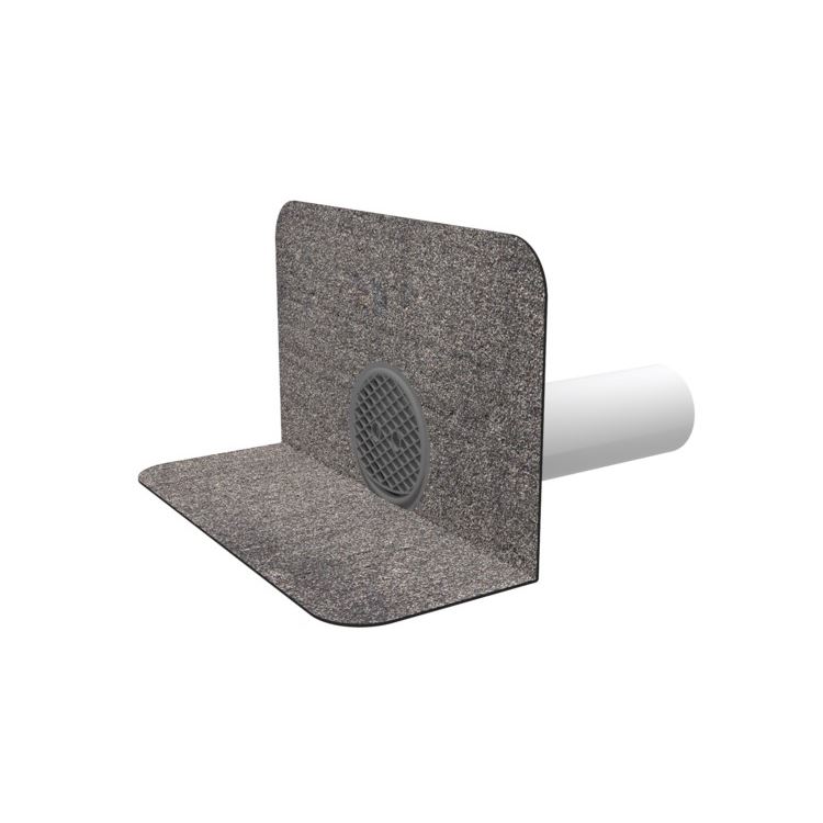 TOPWET Wasserspeier, rund, mit integrierter Manschette aus modifizierter Bitumenbahn und einem Schutzgitter. Länge 600 mm, auf Bestellung eine Verlängerung bis zu 1500 mm möglich.
