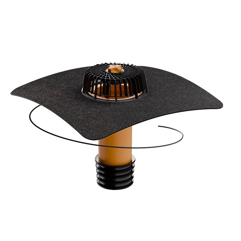 TOPWET Sanierungsgully mit integrierter Manschette aus modifizierter Bitumenbahn, mit Kiesfangkorb, beheizbar mit 230 V mit Anschlusskabel. Länge 400 mm, auf Bestellung eine Verlängerung bis zu 1500 mm möglich.