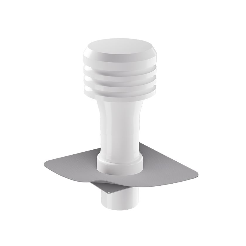 TOPWET Kanalisationsentlüftung zum Anschluss an die Entlüftungsleitung mit integrierter EPDM-Manschette einschließlich einer Regenschutzkappe. Höhe über der Wärmedämmung 300 mm (max. 500 mm), Tiefe unter der Wärmedämmung 300 mm (max. 1000 mm).
