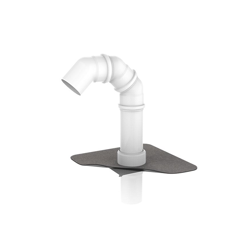 TOPWET Kabeldurchführung mit integrierter Manschette aus modifizierter Bitumenbahn. Höhe über der Wärmedämmung 300 mm (max. 500 mm), Tiefe unter der Wärmedämmung 300 mm (max. 1000 mm).