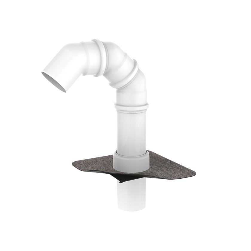 TOPWET Kabeldurchführung mit integrierter Manschette aus modifizierter Bitumenbahn. Höhe über der Wärmedämmung 300 mm (max. 500 mm), Tiefe unter der Wärmedämmung 300 mm (max. 1000 mm).